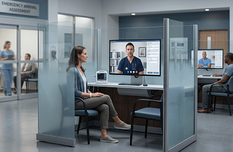 Virtual Provider in Triage (VPIT) places a licensed provider at the front of the ED arrival using telehealth. Instead of waiting to be roomed, patients get an early exam, orders, and decisions within minutes.